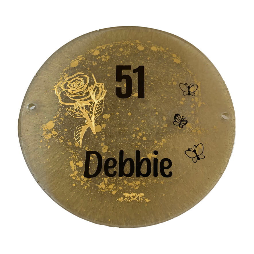 Het huisnummerbord wordt gemaakt door giethars, met daarop de belettering. Door de hars krijgt het huisnummerbord een bijzondere kijkhoek, wat steeds een mooi beeld geeft.